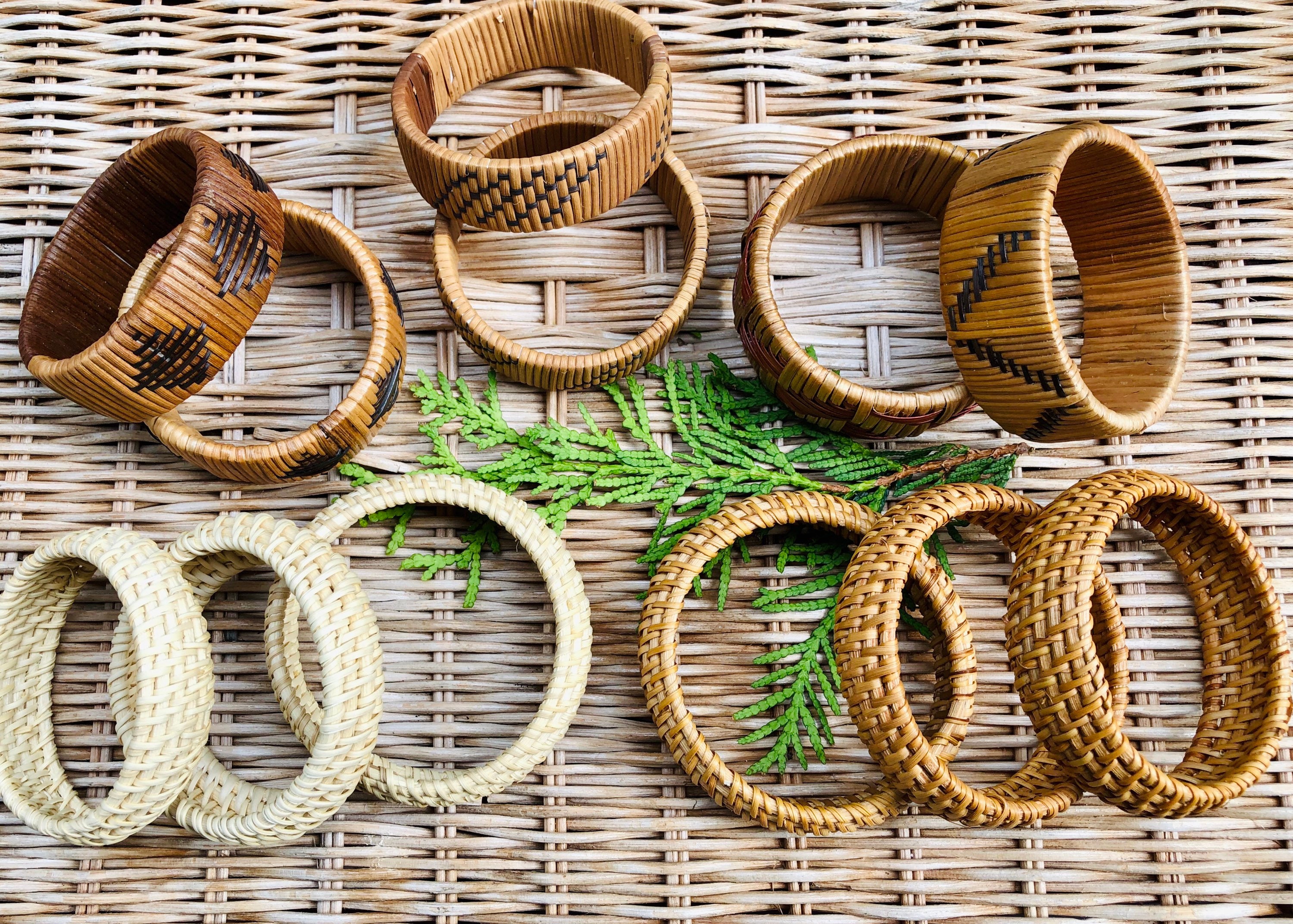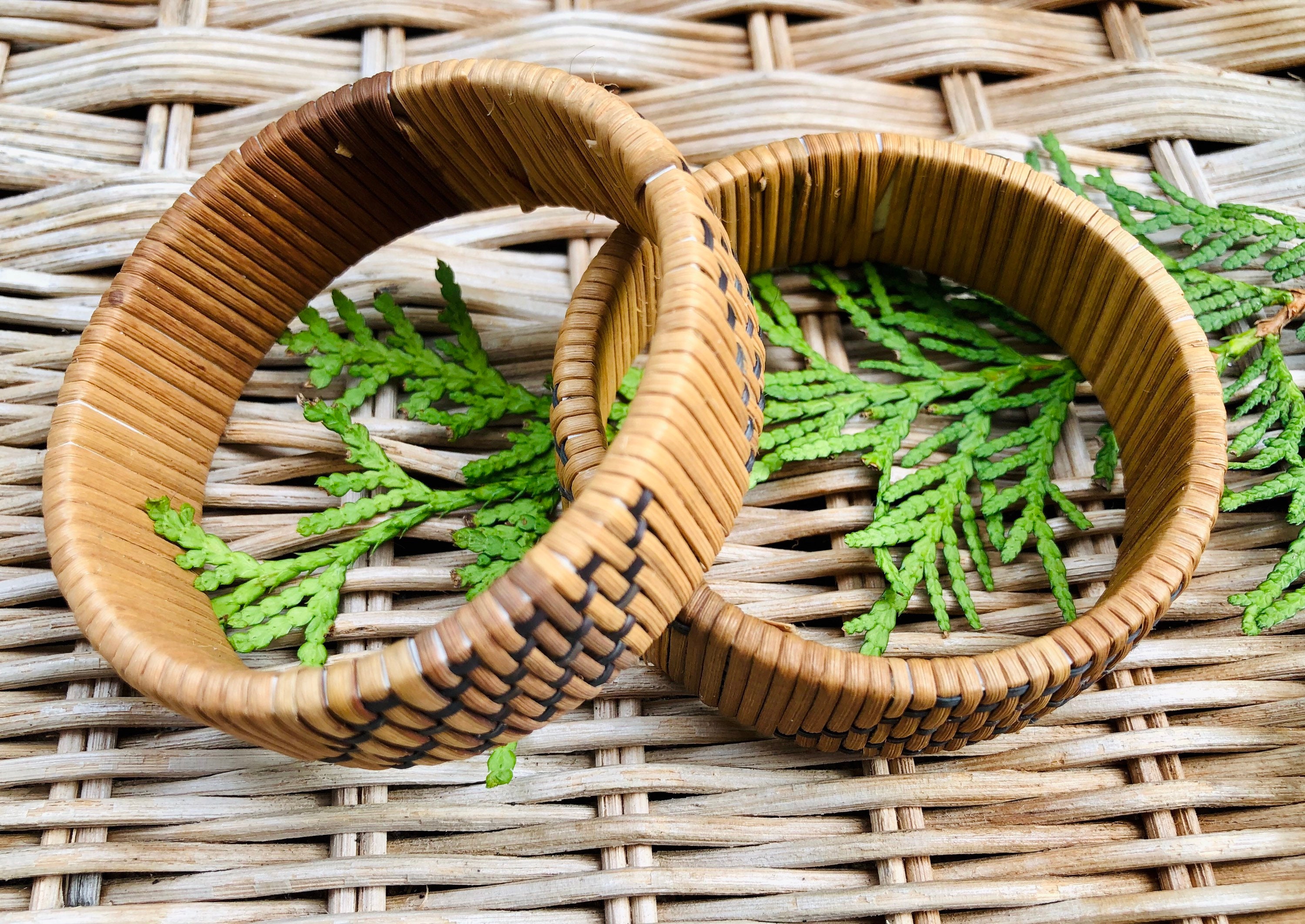 Diagonal Stripe Round handwoven wooden rattan bracelets | Natural rattan bangles | boho bracelet | wicker bracelet | handmade bracelet