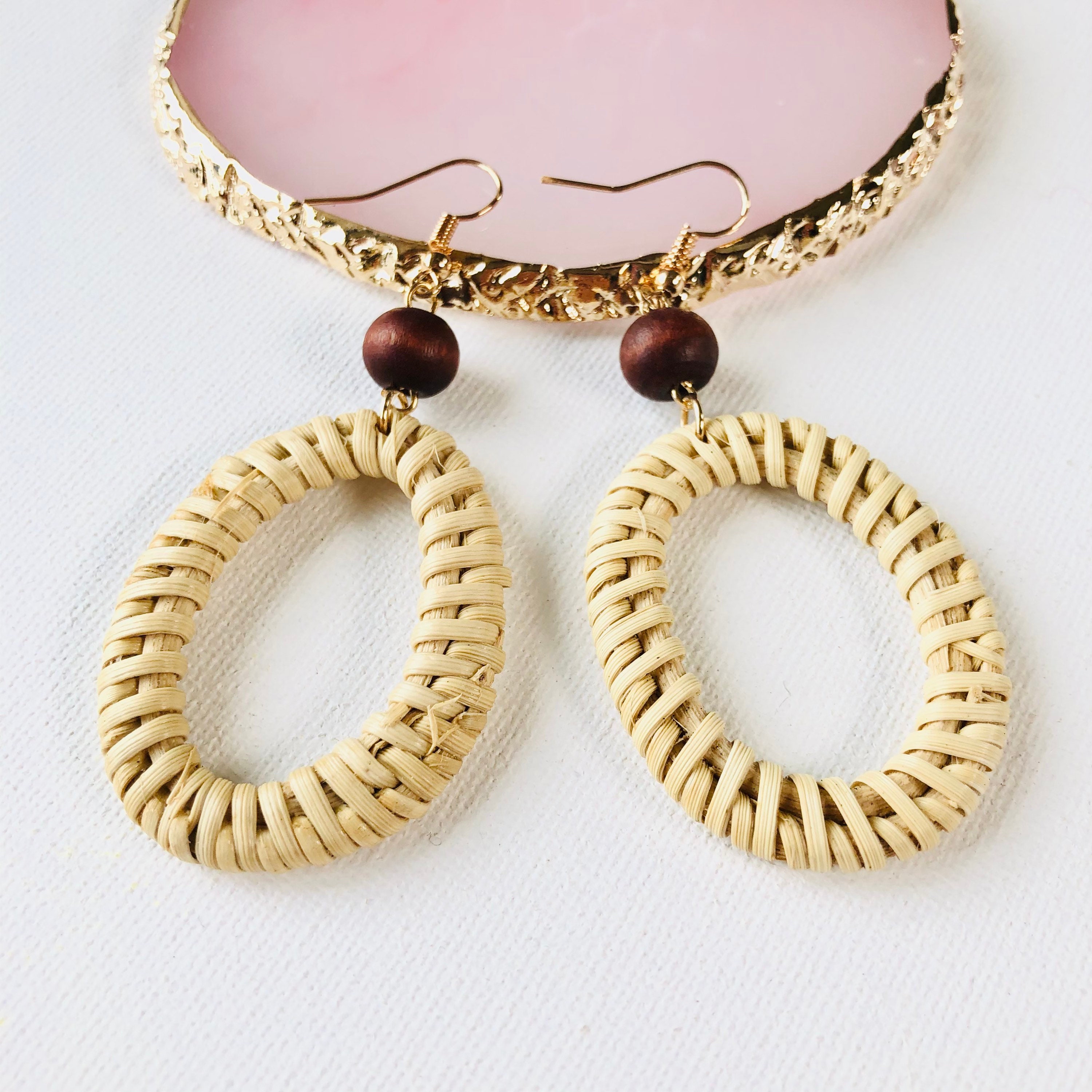 Flower Handwoven Rattan Earrings |Handmade Earrings | Hoop Earrings |Boho Earrings | Wicker Earrings | Christmas Earrings