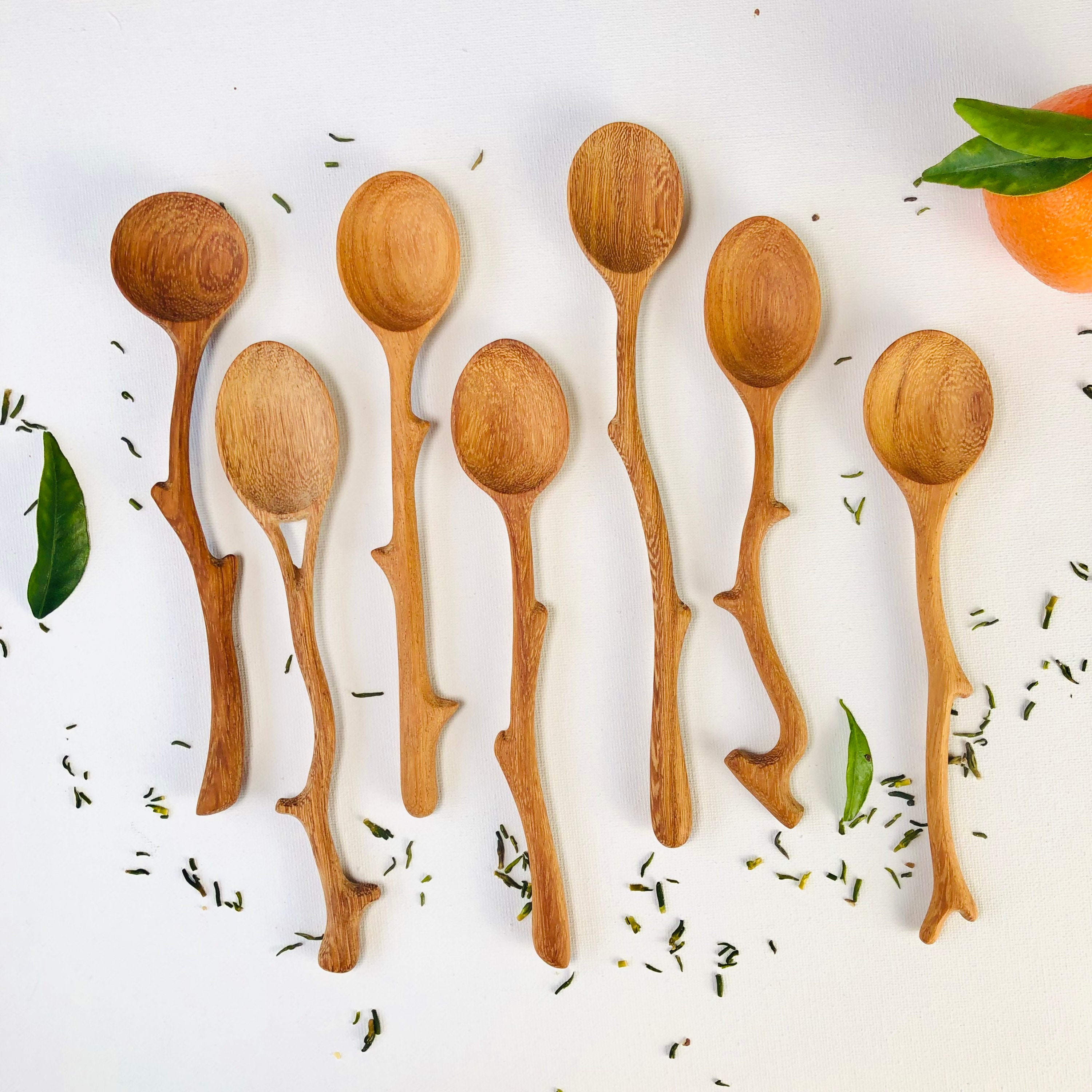 These beautiful branch handle spoons are exclusively designed and handcrafted by Vietnamese Wood Masters from 100% natural Doussie wood.