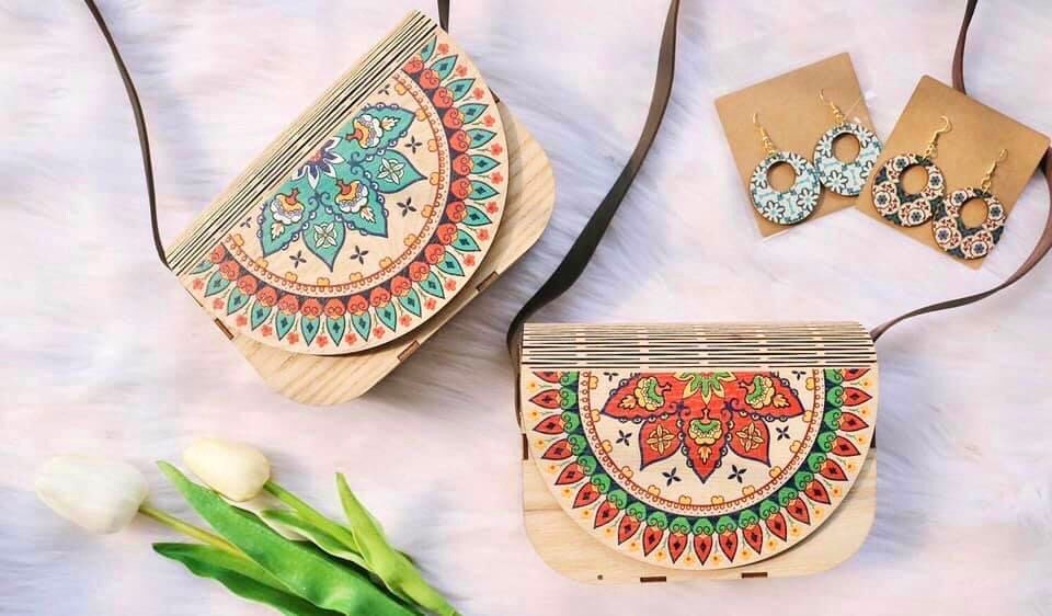 🎁 FREE A pair of earrings of your choice with every wooden bag you purchase 💚