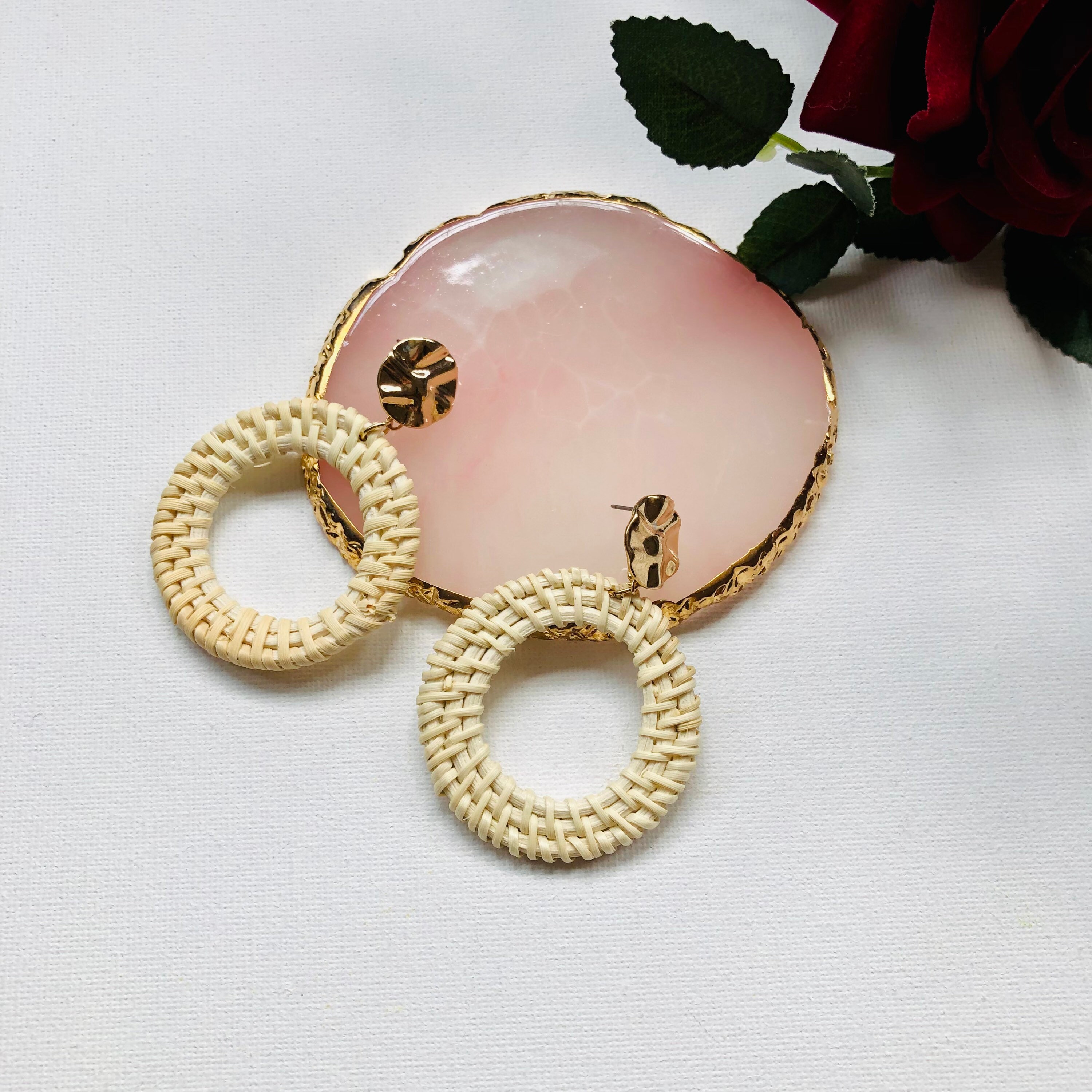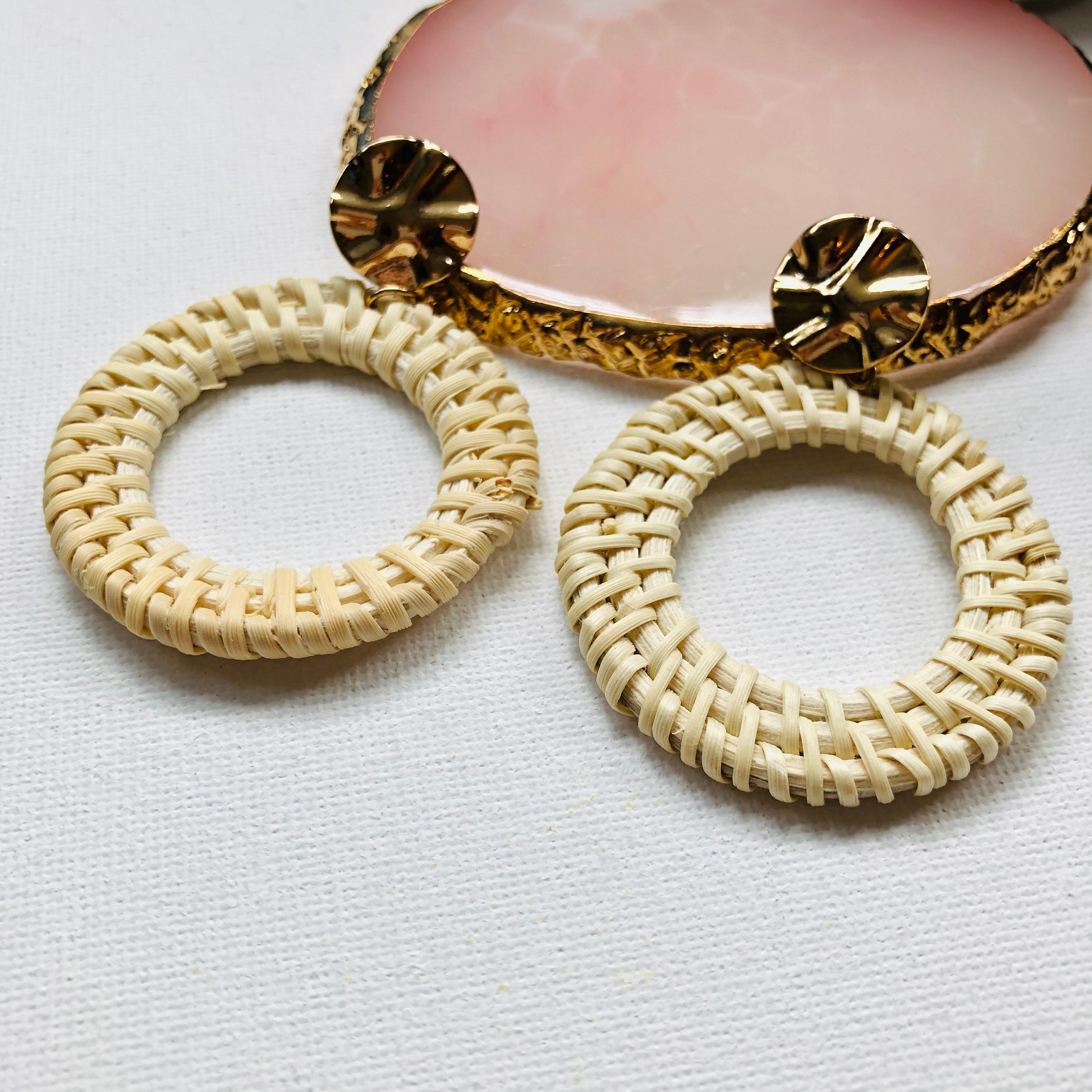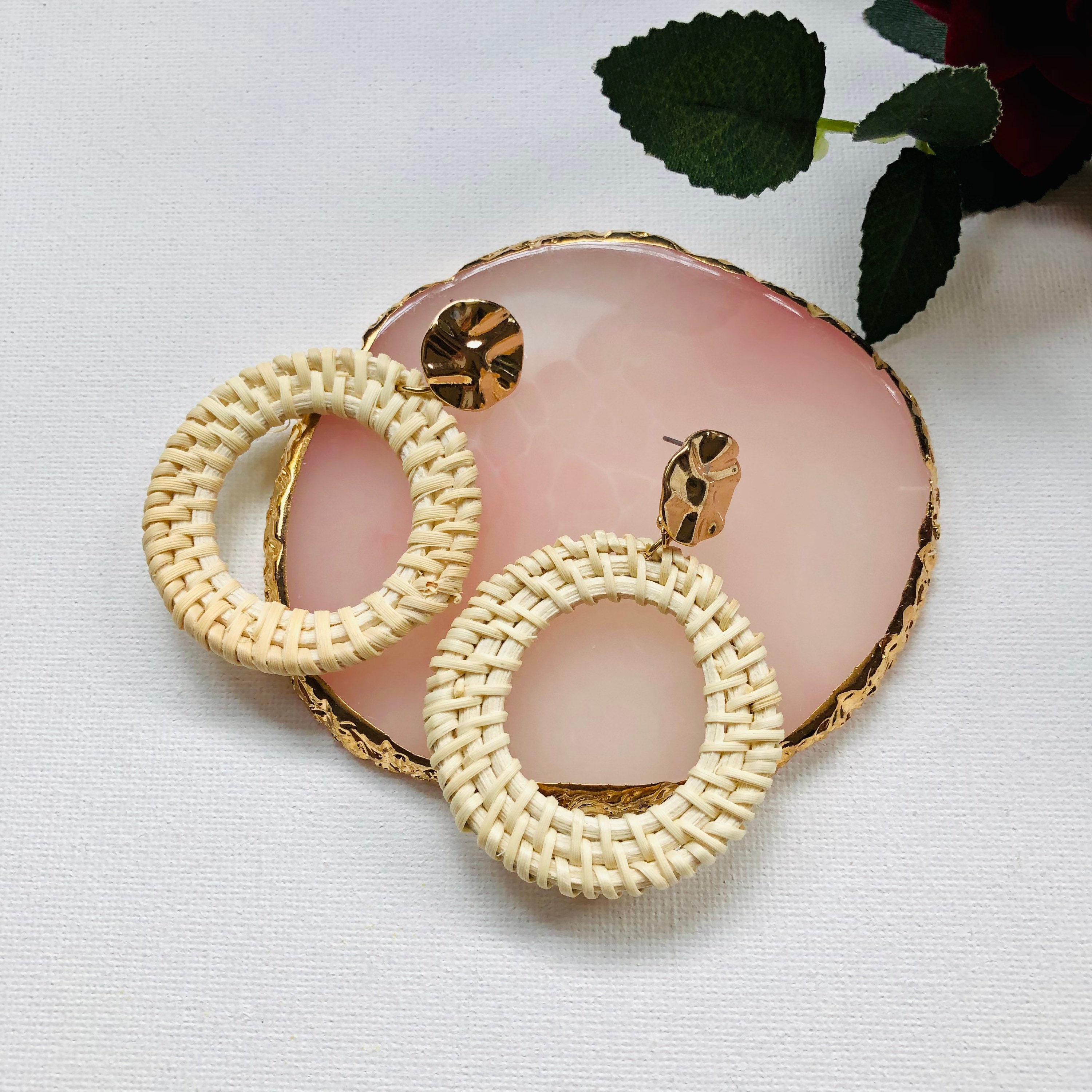 Handwoven Hoop Rattan Earrings |Handmade Earrings | Boho holiday summer Earrings | Vacation earrings | Party Earrings | Beach Earrings