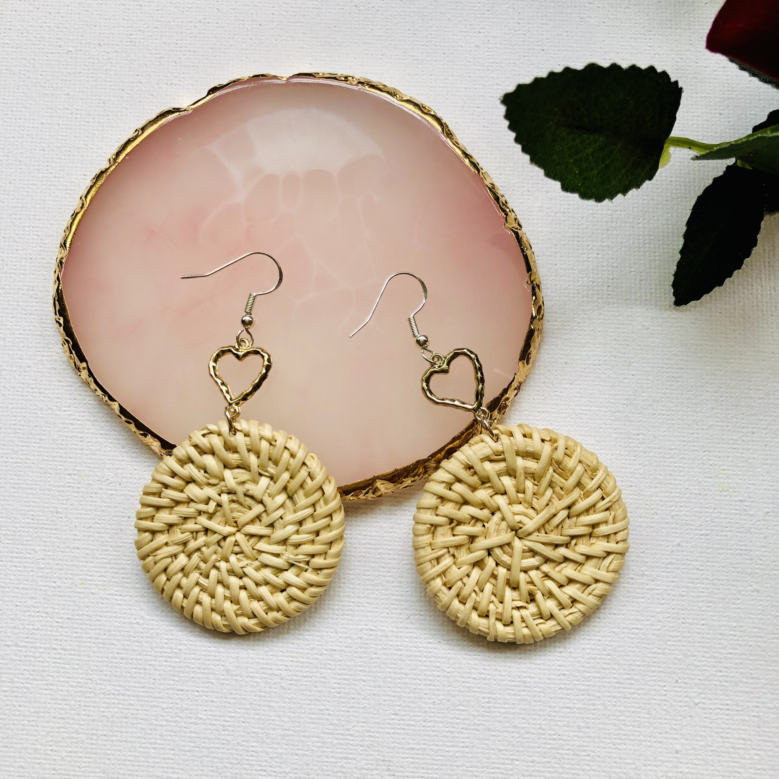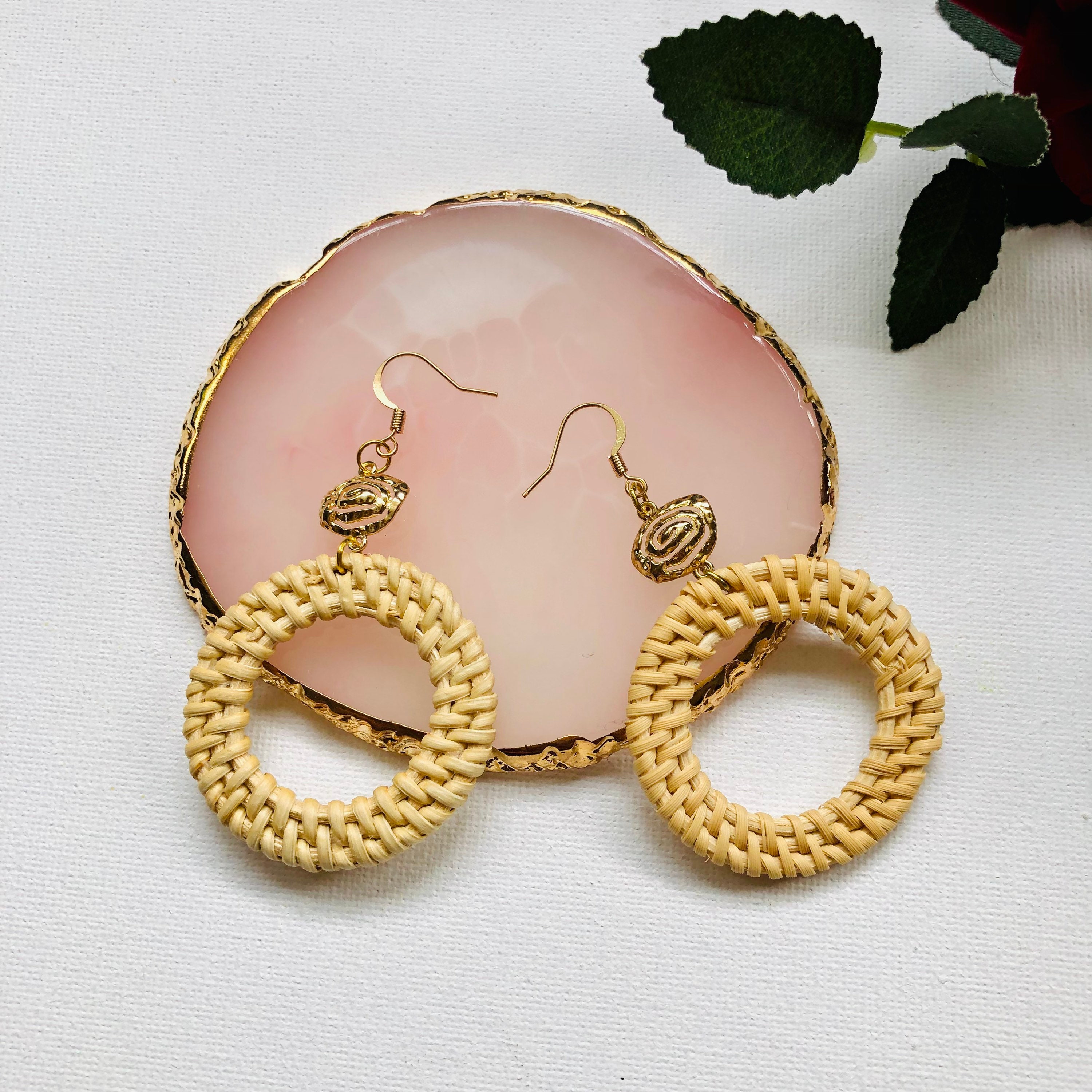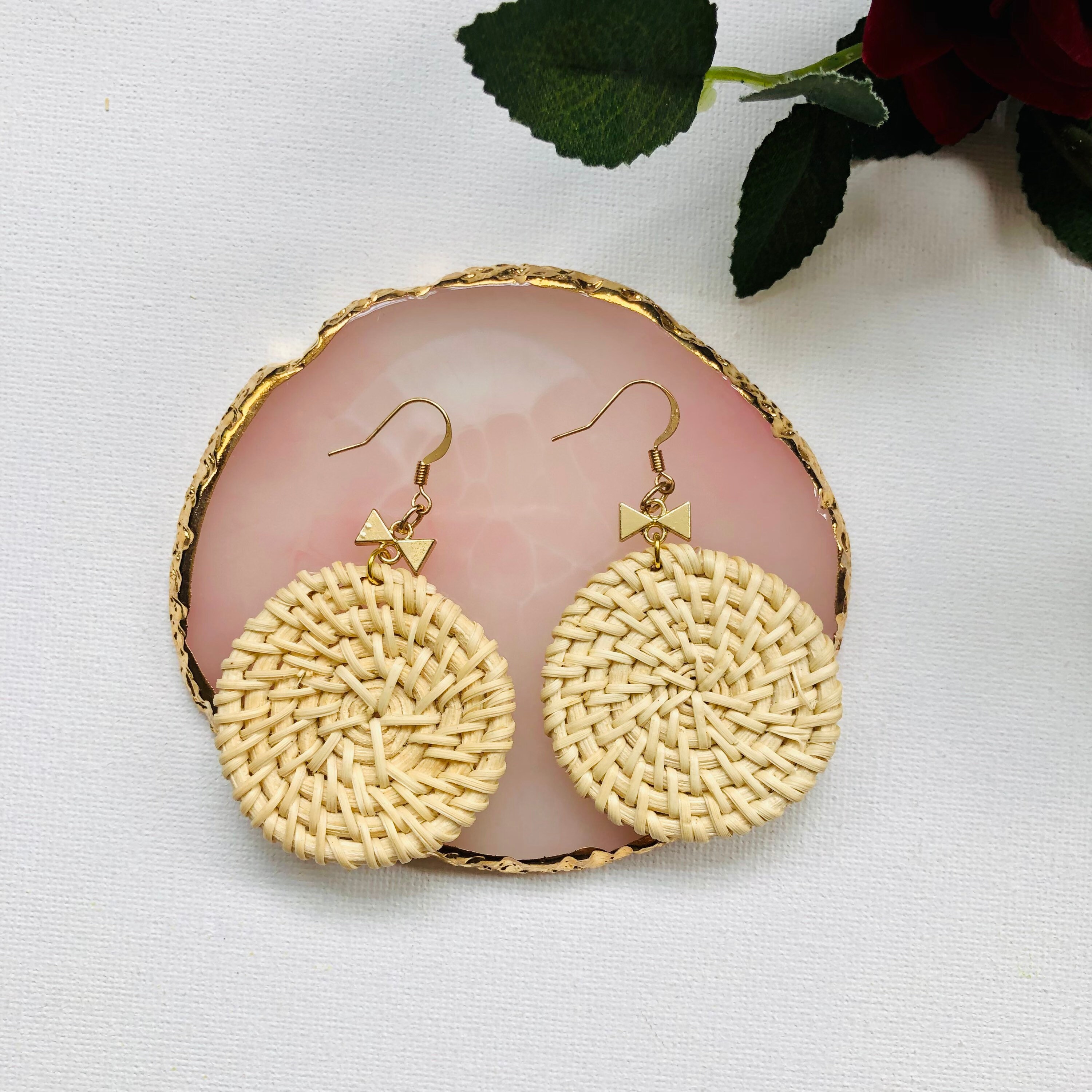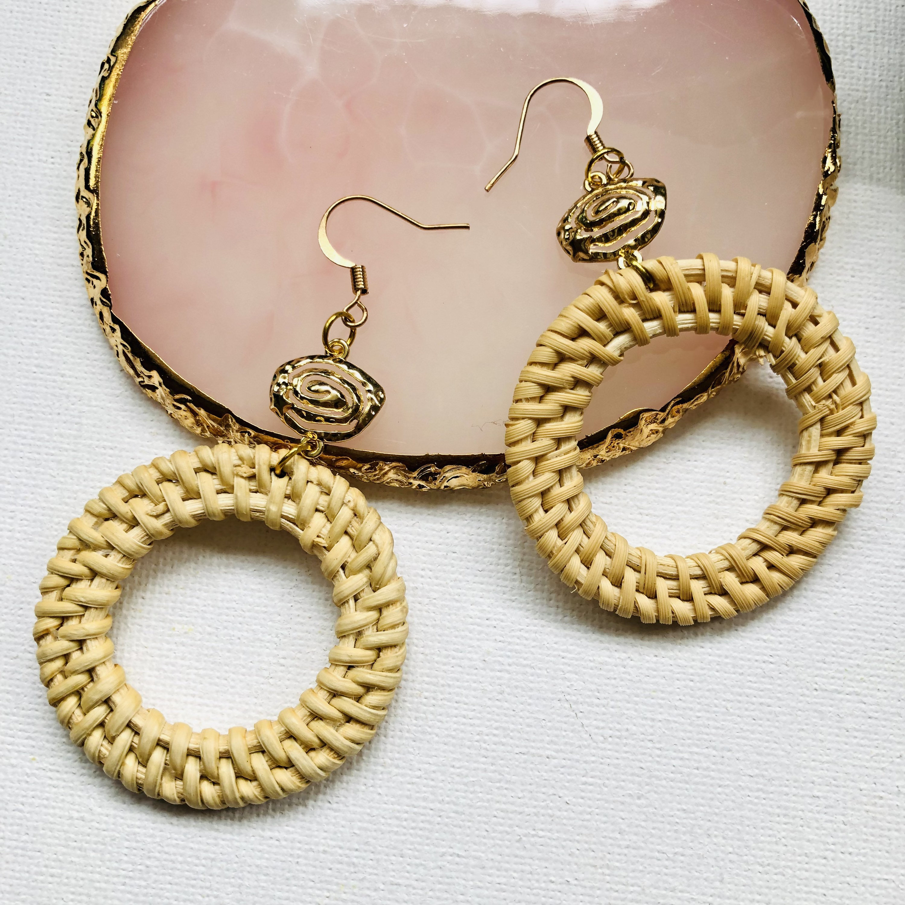 Handwoven seashell beach Rattan Earrings |Handmade Earrings | Boho holiday summer Earrings | Vacation earrings