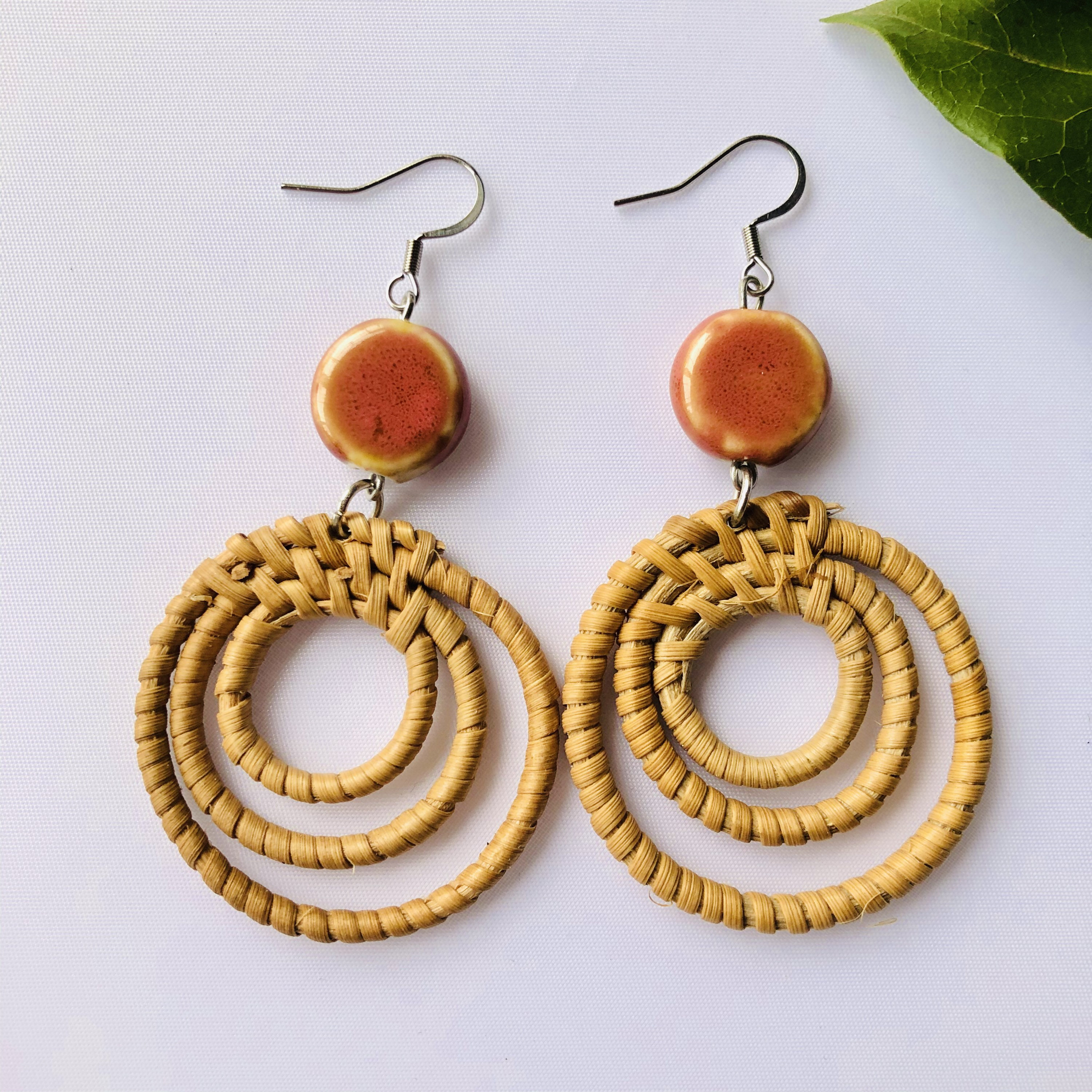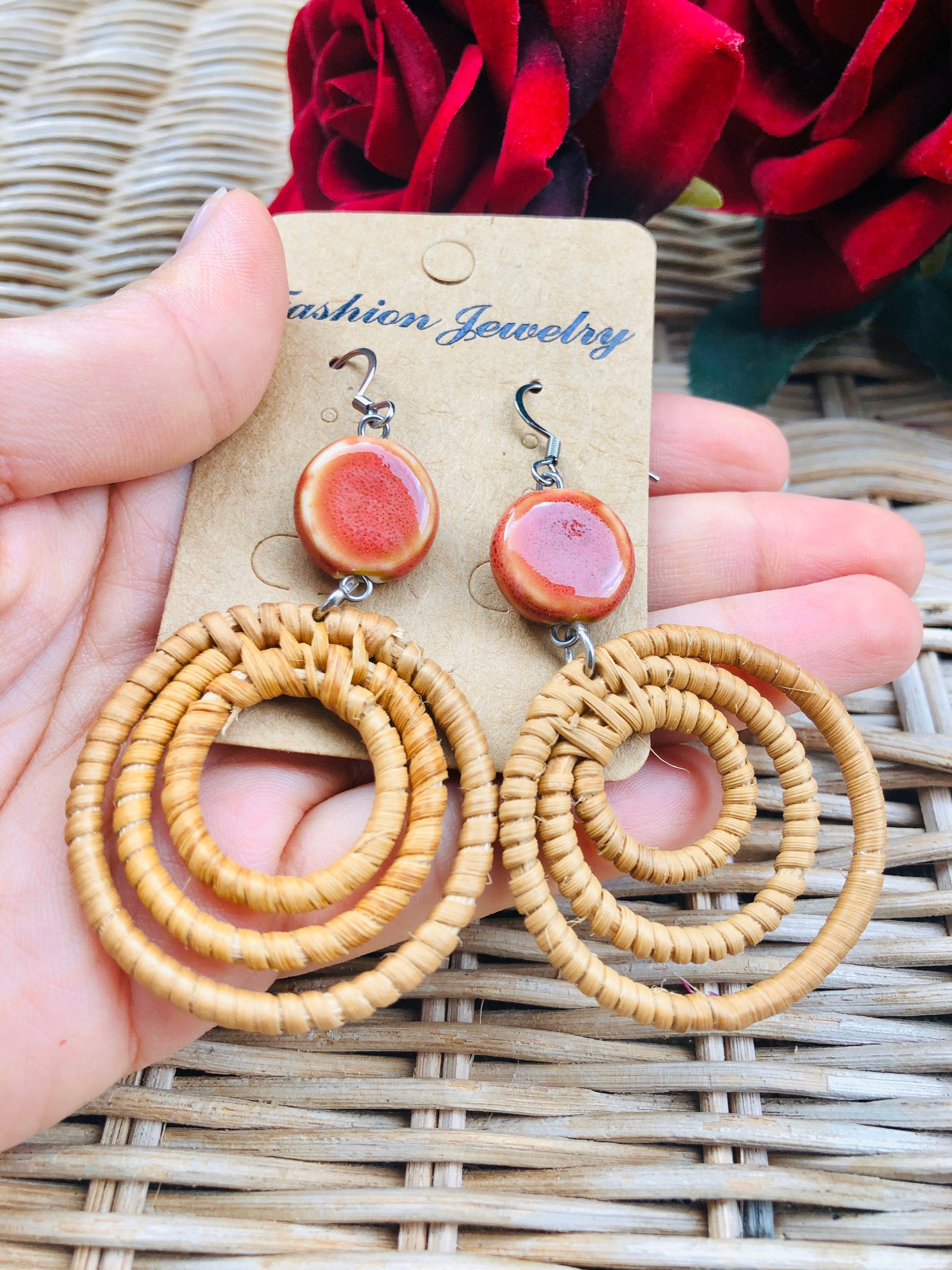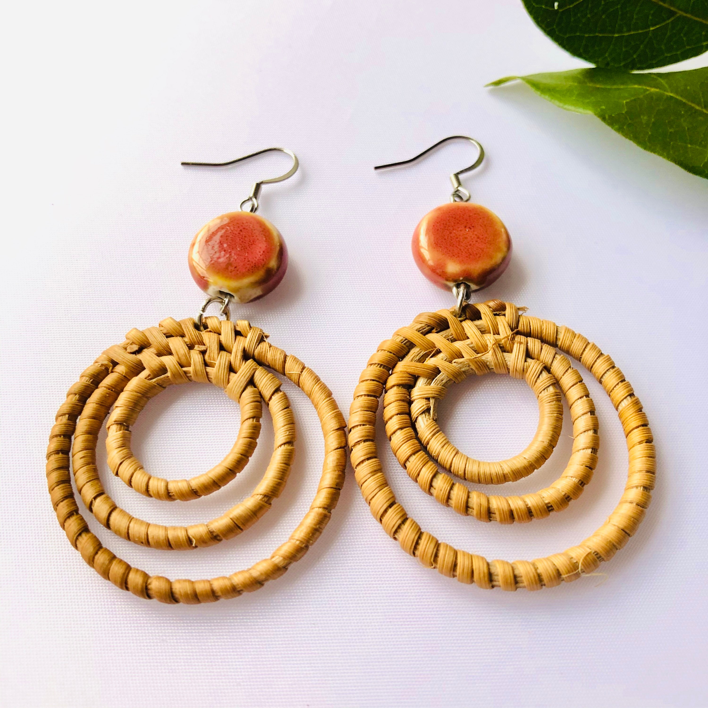 Hoop Circle Handwoven Rattan Earrings |Rattan Earrings | Statement Earrings | Straw Earrings | Wicker Boho Earrings