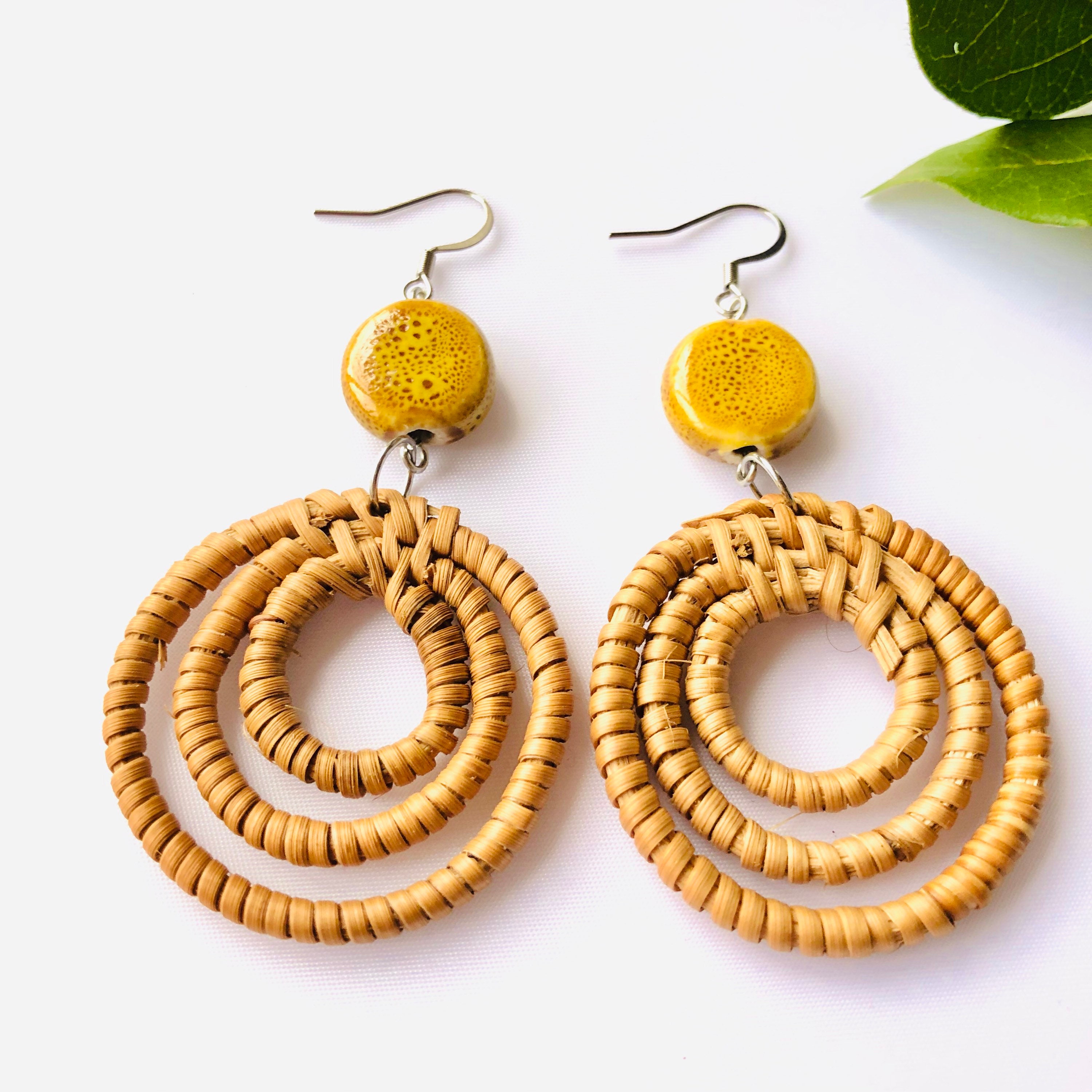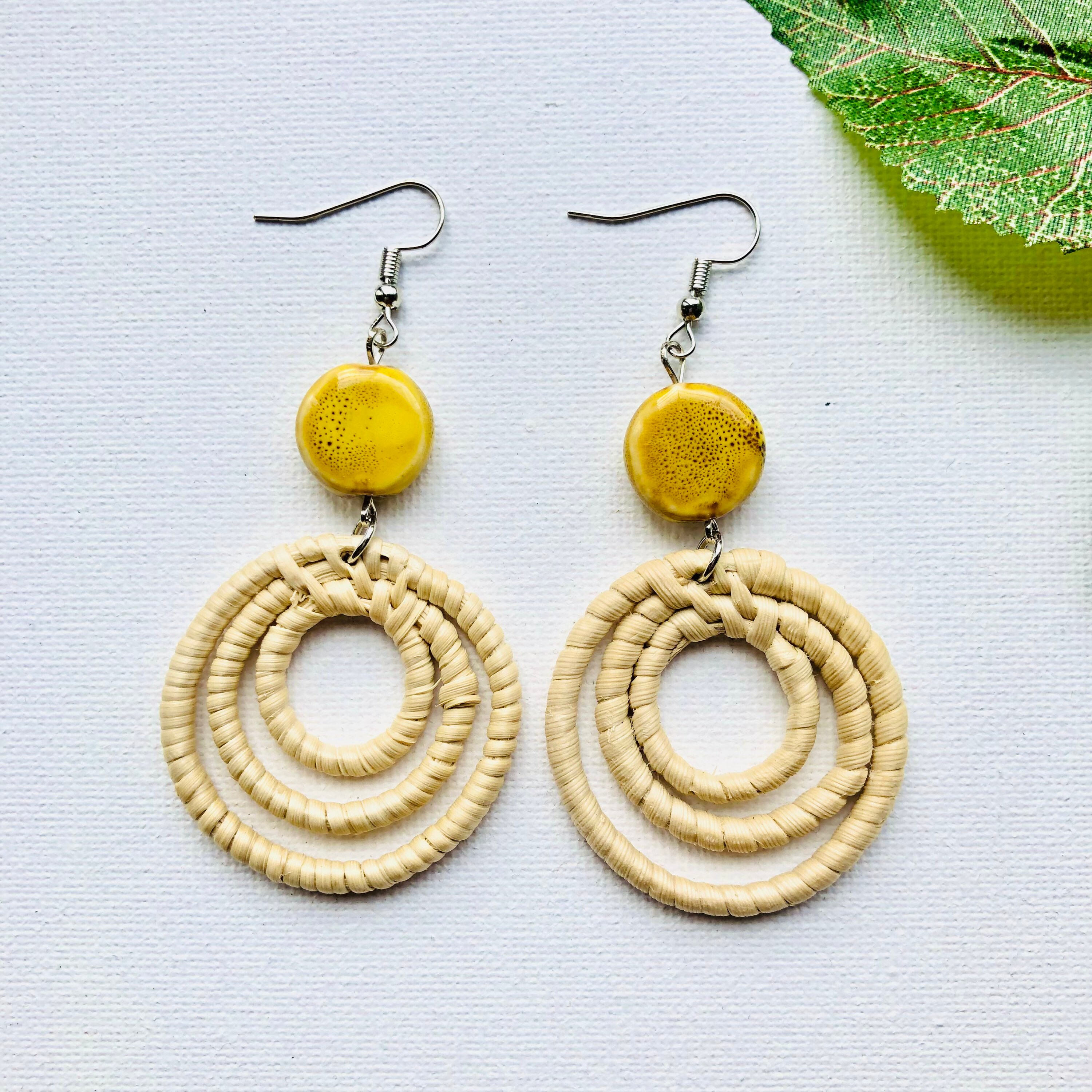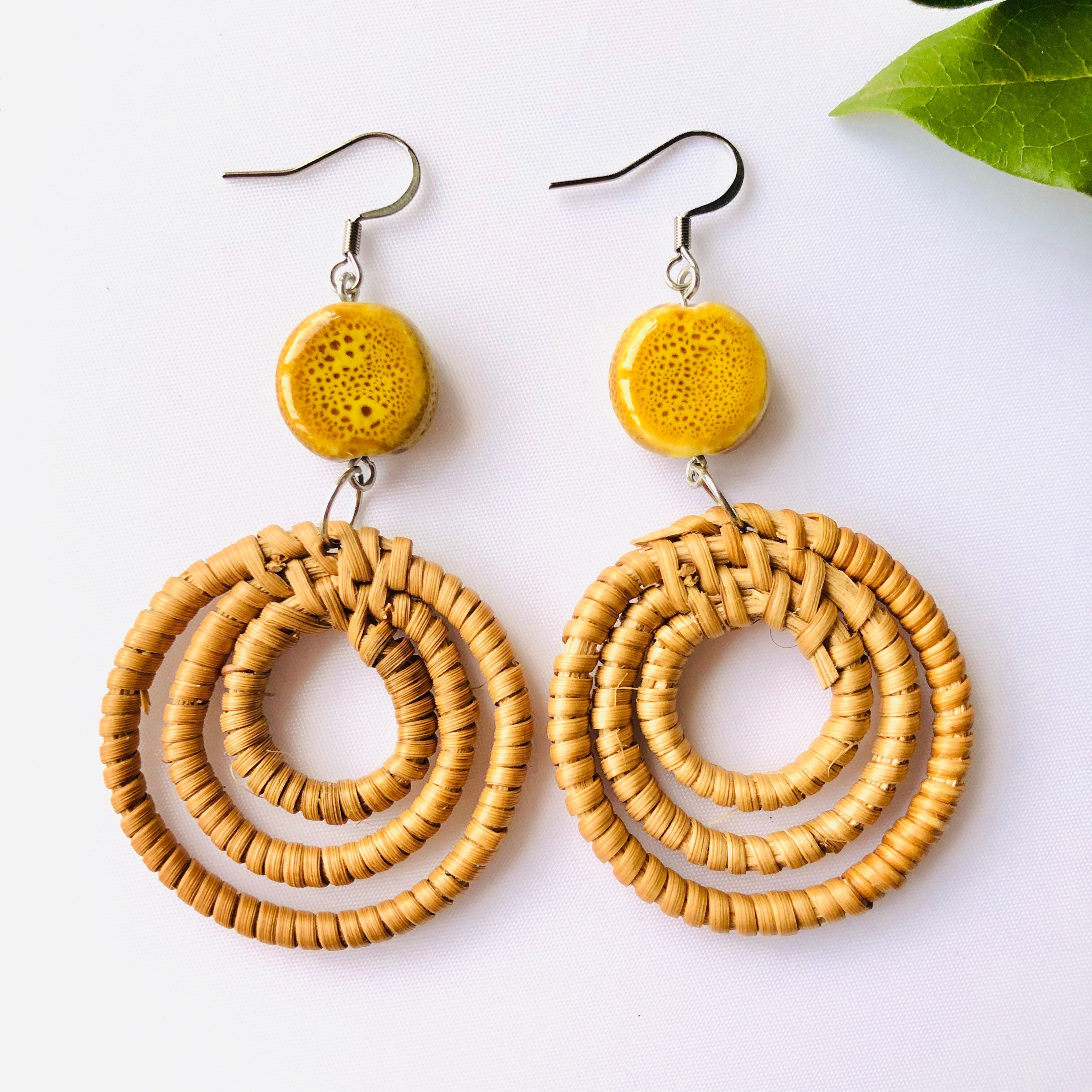 Hoop Circle Handwoven Rattan Earrings |Rattan Earrings | Statement Earrings | Straw Earrings | Wicker Boho Earrings